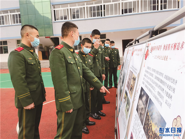 中國彭水網(融媒體記者 向玉婷 攝影)1月22日,縣圖書館“流動服務車”開進武警中隊向官兵們捐贈書籍,并舉行“牛文化”主題展,充實軍營文化生活,提高軍人文化素養。此次縣圖書館共向武警中隊捐贈書籍87冊,主要涵蓋政治、歷史、文學、軍事、社會科學等門類,深受官兵們的喜愛。圖為官兵們正在看展覽。