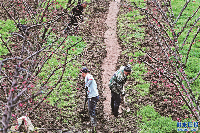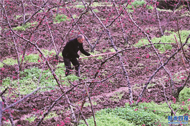 中國彭水網(融媒體記者 趙 勇 攝影)人勤春來早,春耕備耕忙。眼下正是春耕的最佳時期,彭水各鄉鎮田間地頭,處處可見一片春耕備耕的忙碌景象。圖為漢葭街道大樹村村民正在鷹嘴桃種植基地勞作。