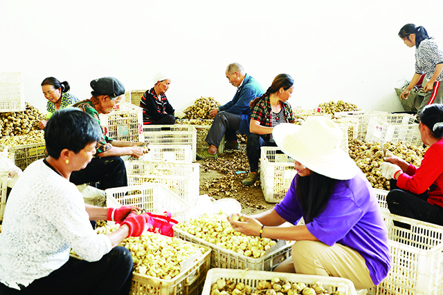 9月4日,黃嶺村的百合加工廠熱鬧非凡,火爐燒得紅紅火火,剝片的、搬運的、清洗的、蒸煮加工的工人,都井井有條地忙碌起來,大家在歡笑聲中,似乎忘記所有的勞累與疲憊,因為大家看到了新的發展契機和希望。