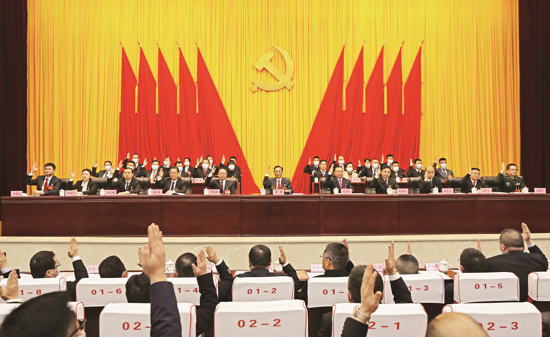 大會主席團常務主席石強主持大會,大會主席團常務委員會成員陳清松、羅道書、蔣孟軒、王兵、裴煜宇、王凡鵬、王露波、譚毅力、楊建華、馮吉光在主席臺前排就座。