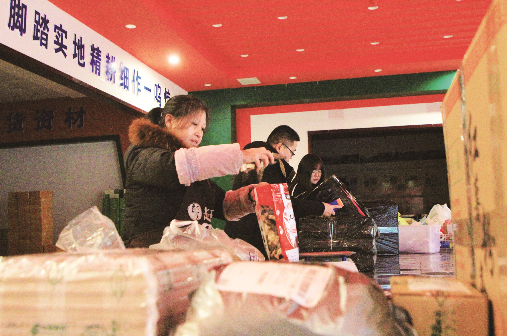 在彭水網貨加工中心,工作人員正在對顧客下單的農特產品進行訂單處理、打包、發貨,現場一片忙碌。年貨節期間,通過“彭水趕場”電商平臺銷售彭水土雞、紅苕粉、臘肉等為代表的農特產品,銷售十分火熱,深受廣大市民和網友的喜愛。