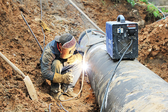 重慶彭水網融媒體記者 冉江陵  攝影)3月29日,在鹿鳴鄉農田村2組,記者看到工作人員正在焊接鳳升水庫至縣城供水項目引水管道。據了解,水庫建成后將極大程度提升供水保障能力和改善彭水縣城、縣城拓展區及沿線鄉鎮居民飲用水質量。
