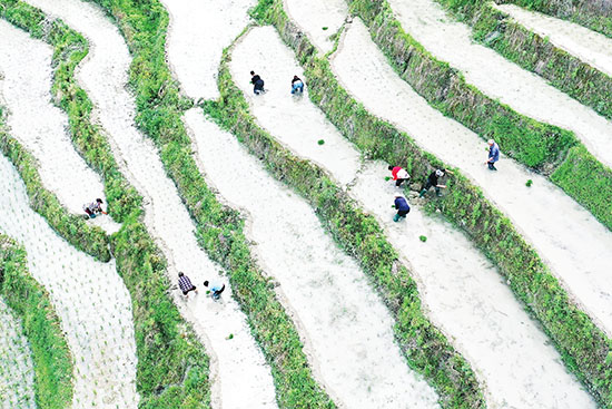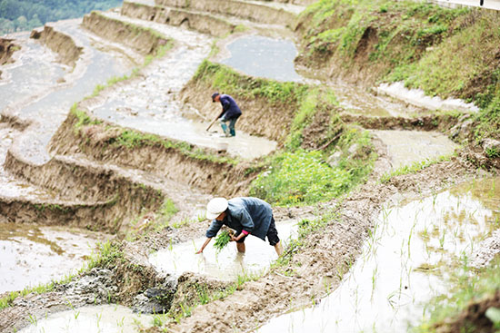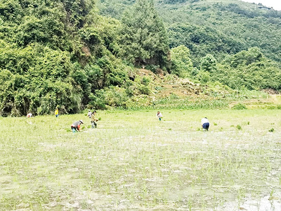 聯(lián)合鄉(xiāng)龍池村海拔在400—1200米之間,海拔落差大,山高坡陡,近年來,由于當?shù)卮蠖鄶?shù)青壯年外出務(wù)工,導(dǎo)致良田變成撂荒地。今年,龍池村通過“村集體+公司+農(nóng)戶”的模式,對1000多畝梯田進行全面復(fù)耕復(fù)種,在盤活撂荒地、促進糧食生產(chǎn)的同時,一道道梯田景觀帶動了當?shù)剜l(xiāng)村旅游的發(fā)展,進一步拓展了村民增收致富的渠道。