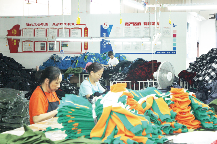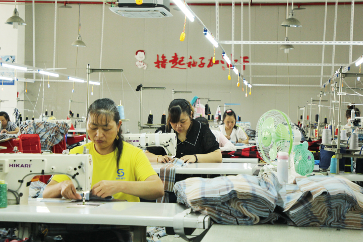 據公司負責人劉秀娟介紹,公司主要從事服裝設計、制板、剪裁、縫紉、包裝等工序,擁有500多臺先進的服裝加工機器設備,完整的生產流水線。