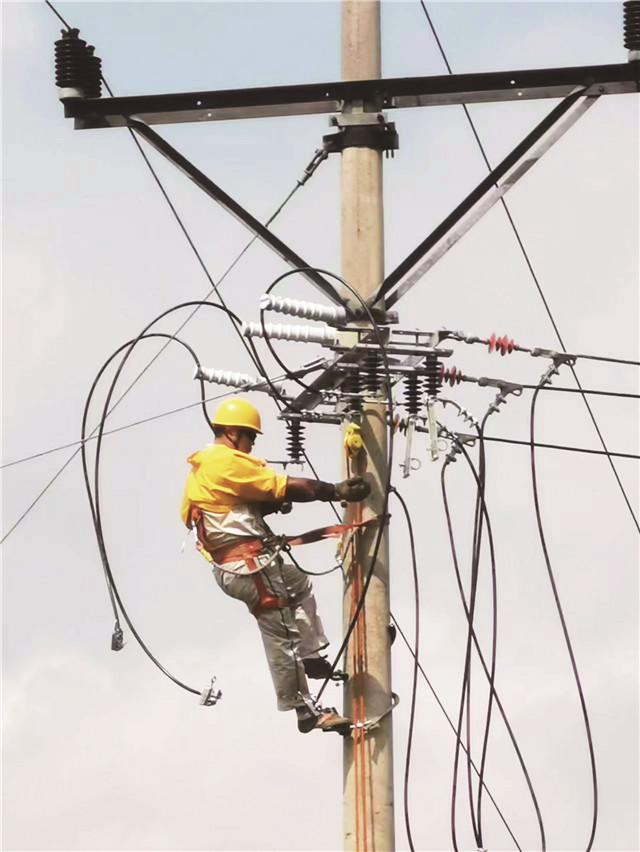 隨著開關的斷開和接地線的裝設完畢,搶修工作正式開始,時間一點一點的推移,搶修人員的衣服已全部濕透。片刻功夫便大汗淋漓,厚厚的工作服被汗水裹濕了,像粘上了糊槳一樣緊緊地貼在身上。雖然摸上電桿燙手,但為了下塘社區居民盡快用上電,搶修人員硬是咬牙堅持,全身心投入搶修作業中。