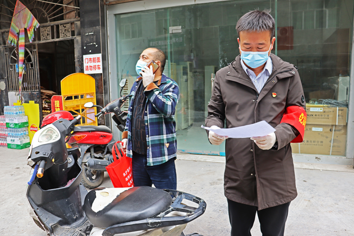 一個上午,王育就已經完成了三十幾戶入戶信息排查告知,快到午飯時間,他反而加快腳步去到下一戶居民家。“快一點完成工作,就能為戰勝疫情多貢獻一份力量。作為黨員,這種時候就更不能慢。”王育邊走邊說,“昨天一早就開始工作,一直到晚上,排查了100多戶,今天情況好一些,只需要排查60多戶,我這邊工作做完了,就去看一下其他人需不需要協助?!?nbsp;