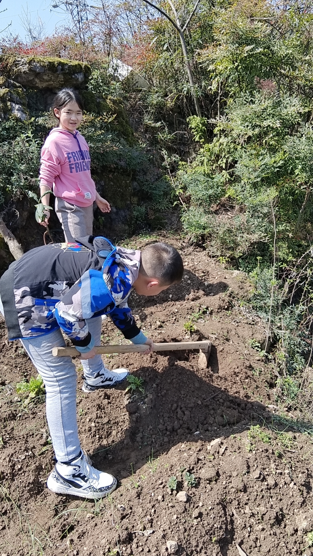周末陽光正好,彭三小的孩子給小樹苗“安家”
