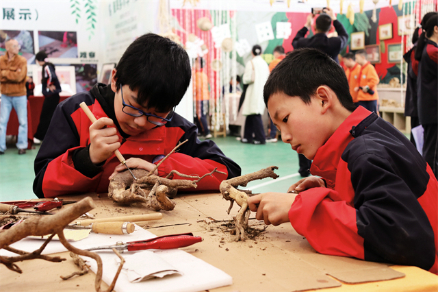 制作根雕。