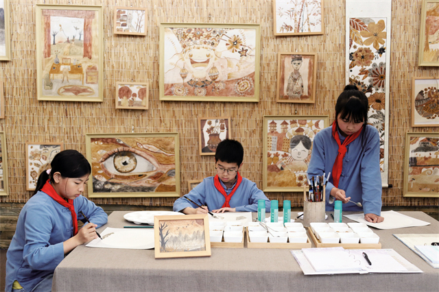 在實物作品展區(qū),綠芽水墨畫工作坊、土生陶工作坊、藤草編織工作坊、苗鄉(xiāng)剪花工作坊、摩云之聲漫畫工作坊等26個展館依次排列,里面薈集了來自彭水中學(xué)、彭水職教中心、特殊教育學(xué)校、三義鄉(xiāng)小學(xué)、鞍子鎮(zhèn)小學(xué)等中小學(xué)校的師生作品,涉及剪紙、根雕、蠟染、版畫、陶藝、版畫等多種藝術(shù)表現(xiàn)形式。