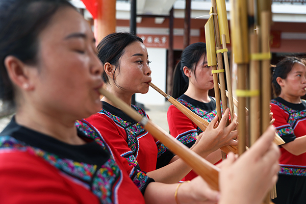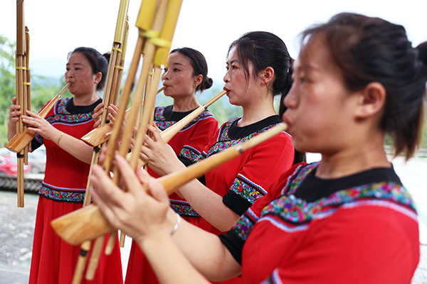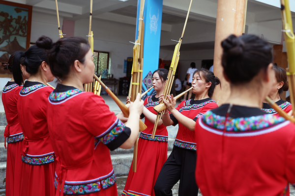 7月10日,縣文化館的蘆笙老師走進鞍子鎮石磨巖苗寨,指導當地村民吹奏蘆笙,豐富大家的文化生活。