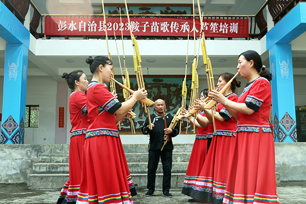 重慶彭水網(首席記者 趙勇 攝影)近年來,我縣定期組織文藝志愿者走進鄉村,培訓普及富有苗族特色的樂器、舞蹈與民歌,弘揚傳統文化,促進鄉村精神文明建設與物質文明建設同步發展,豐富老百姓的精神文化生活。