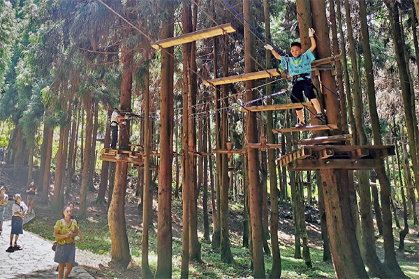 重慶彭水網(wǎng) (記者 楊元忠 攝影)8月12日,游客們在摩圍山景區(qū)體驗飛越叢林的驚險與刺激。摩圍山景區(qū)因其海拔和負(fù)氧離子高,被人們譽為“懸在云端上的氧吧”。近年來,景區(qū)設(shè)置了音樂林、飛越叢林、過障礙等體驗性項目,成為游客避暑納涼的好去處。