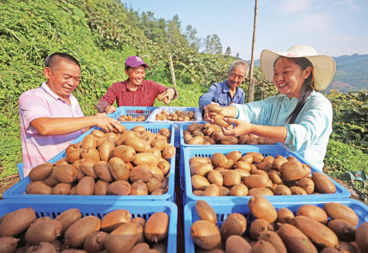 近日,在善感鄉(xiāng)農(nóng)綱村,村民們正將獼猴桃裝上農(nóng)用車輛運(yùn)出基地,樂(lè)享豐收的喜悅。