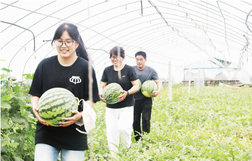 經(jīng)過半年的用心管護(hù),如今,李明琴種植出的西瓜個(gè)大、味甜,深受顧客喜歡。李明琴坦言,想種出品質(zhì)好的西瓜,首先是要選好品種育壯苗,其次是管護(hù)過程中,把握好溫度、濕度?!拔覀冞x擇了美都和麒麟瓜兩個(gè)品種,西瓜個(gè)大,果型好,皮脆瓤甜,是市場(chǎng)上的搶手貨。在種植過程中,堅(jiān)持滴灌、水肥一體化等技術(shù)手段,保持棚內(nèi)溫度,定期整理枝蔓,確保西瓜品質(zhì),讓消費(fèi)者吃得放心。”