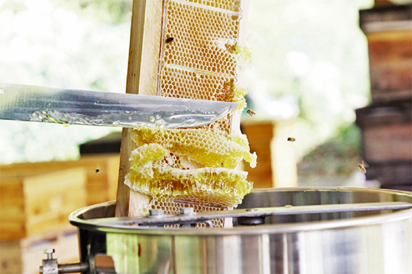 只見(jiàn)養(yǎng)蜂人戴著防護(hù)面罩,動(dòng)作嫻熟地打開(kāi)一個(gè)個(gè)蜂箱,蜂巢中滿是密密麻麻的蜜蜂,很多蜜蜂還圍繞蜂巢嗡嗡地飛舞著。養(yǎng)蜂人輕輕取出巢脾,上面掛滿了晶瑩剔透的蜂蜜,在陽(yáng)光的照耀下,宛如一顆顆璀璨的黃金。隨著割蜜刀的輕輕劃過(guò),香甜醇厚的蜂蜜緩緩流出,那濃郁的香氣瞬間彌漫在空氣中,讓人垂涎欲滴。
