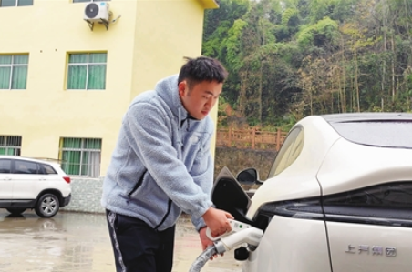 重慶彭水網(記者:張影  攝影)為滿足日益增長的新能源車出行需求,我縣加快公共充電設施需求建設,公共充電樁現已覆蓋了全縣39個鄉鎮街道,實現了超充、快充全覆蓋。收費價格全縣統一,打通了鄉鎮充電最后1公里。圖為新能源車主在棣棠鄉公共充電樁充電。